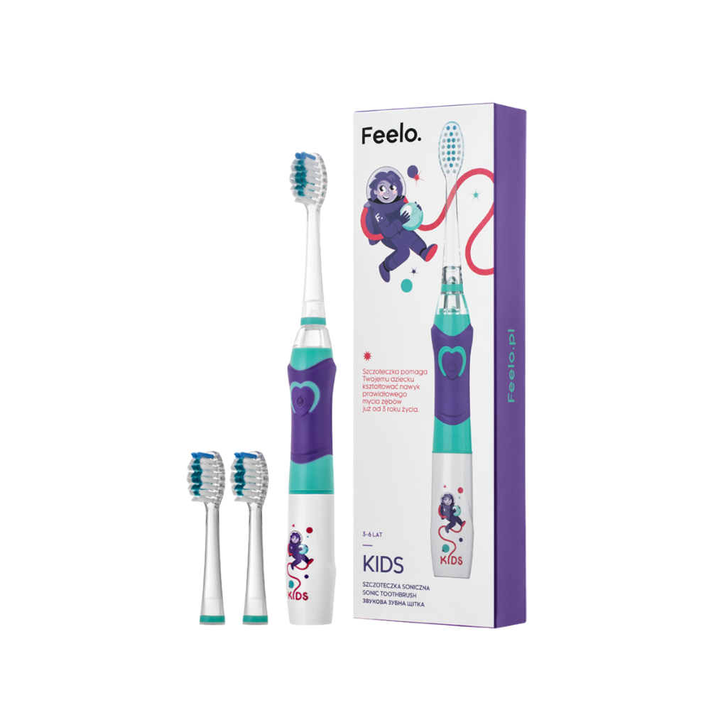 - Szczoteczka soniczna Feelo Kids dla dzieci w wieku 3-6 lat doskonale motywuje malucha do regularnego mycia zębów, jednocześnie ułatwiając mu naukę dbania o higienę jamy ustnej.