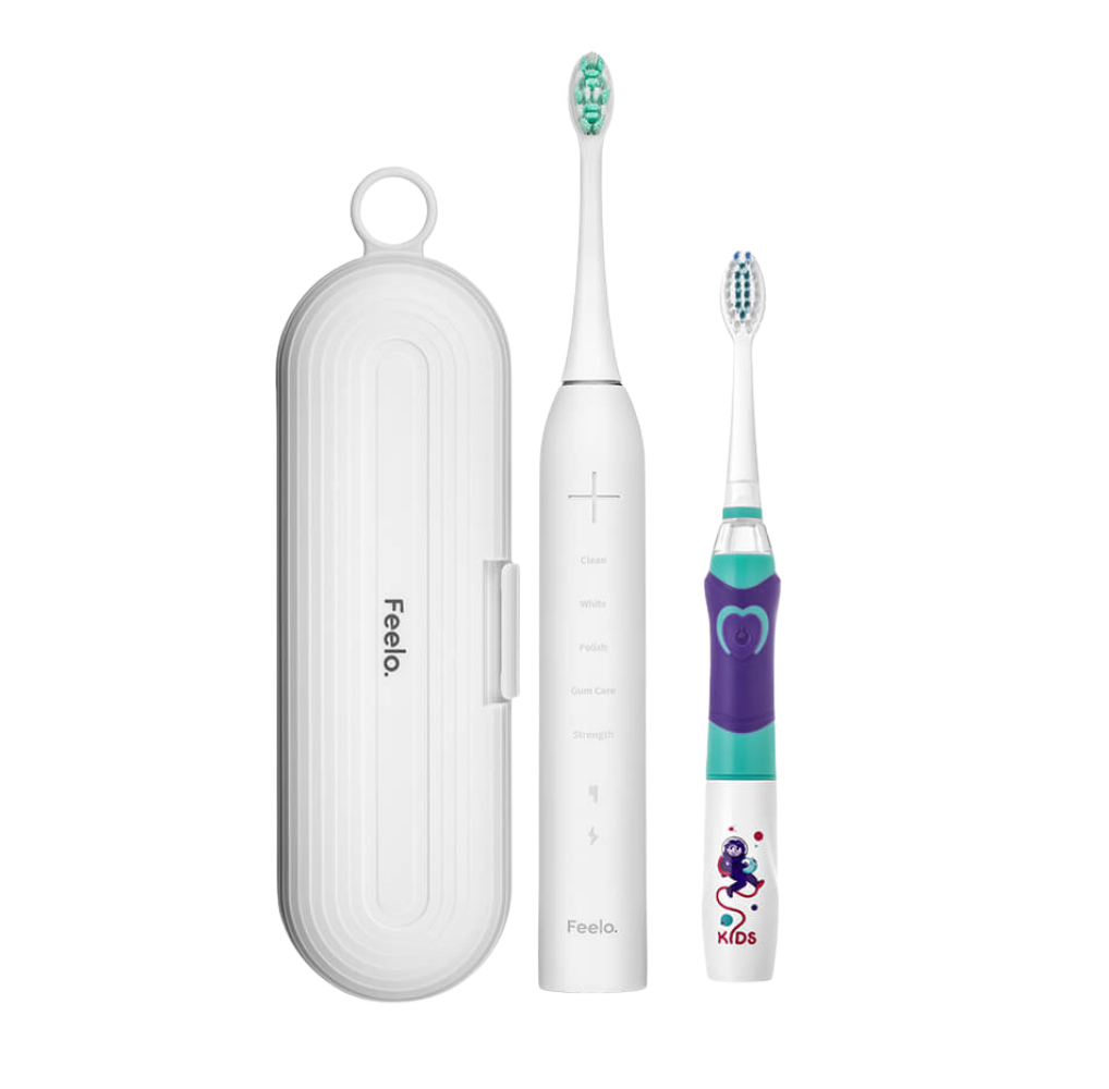 - Feelo Kids to szczoteczka stworzona z myślą o najmłodszych odkrywcach (3–6 lat), a Feelo PRO to zaawansowana szczoteczka dla tych, którzy nie uznają kompromisów w higienie jamy ustnej. Razem tworzą zgrany duet, który ogarnie potrzeby całej rodziny.